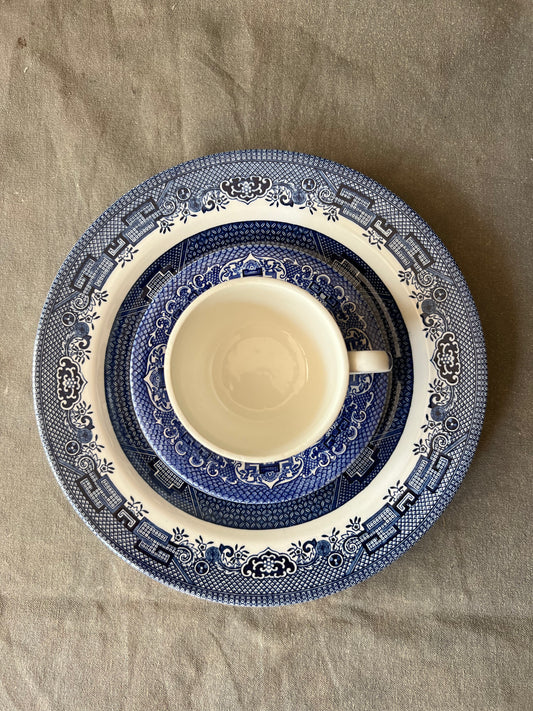 Service for Four Churchill Blue Willow Dinner Set (plate, cup, saucer)