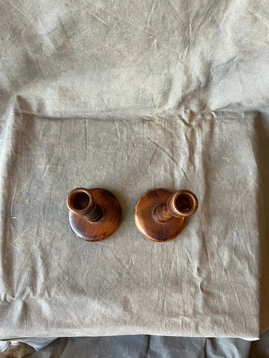Pair of Vintage Turned Wood Dutch Style Candle Holders