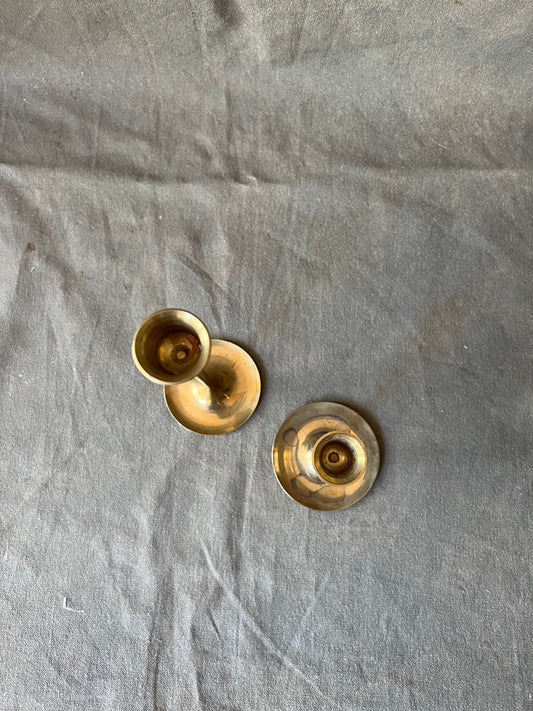 Pair of Vintage Solid Brass Short Candle Holders From Baldwin